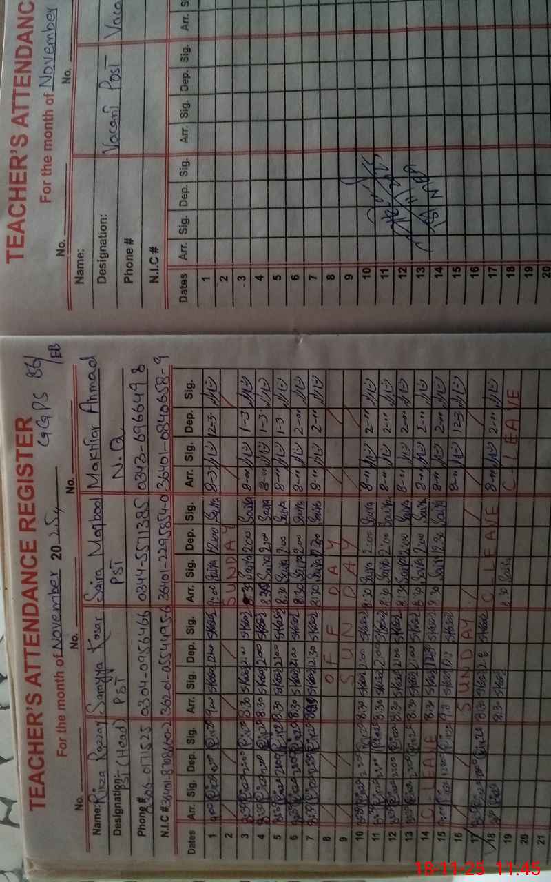 | Name: RI**** RA**** Designation: (School Headmaster's/Headmistress's) PST Phone/Cell Number: 03**** |