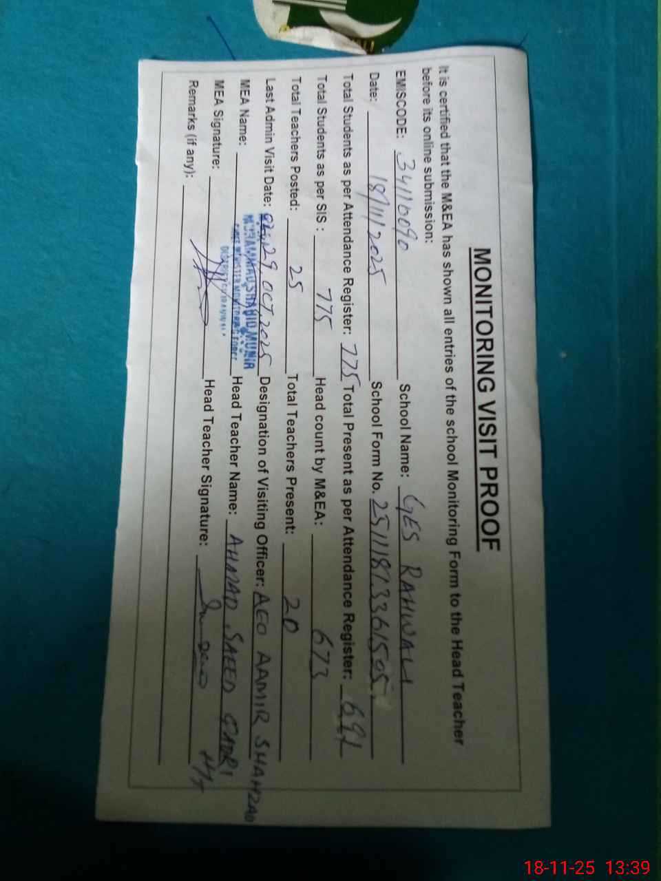 | EMIS Code: 34110090 | Name of School: GES RAHWALI | |||
