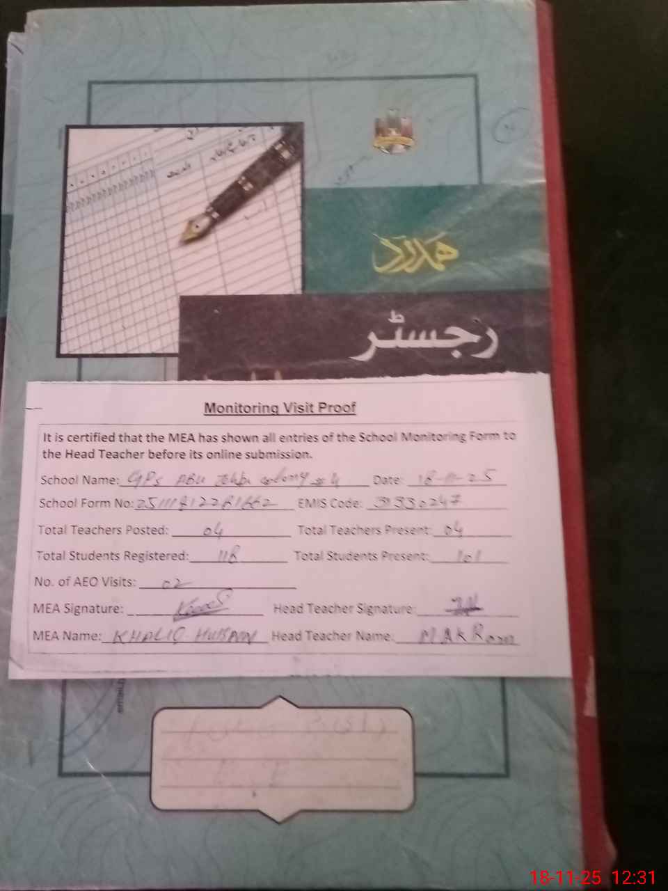 | EMIS Code: 31330247 | Name of School: GPS ABU ZAHBI COLONY NO. 4 | |||