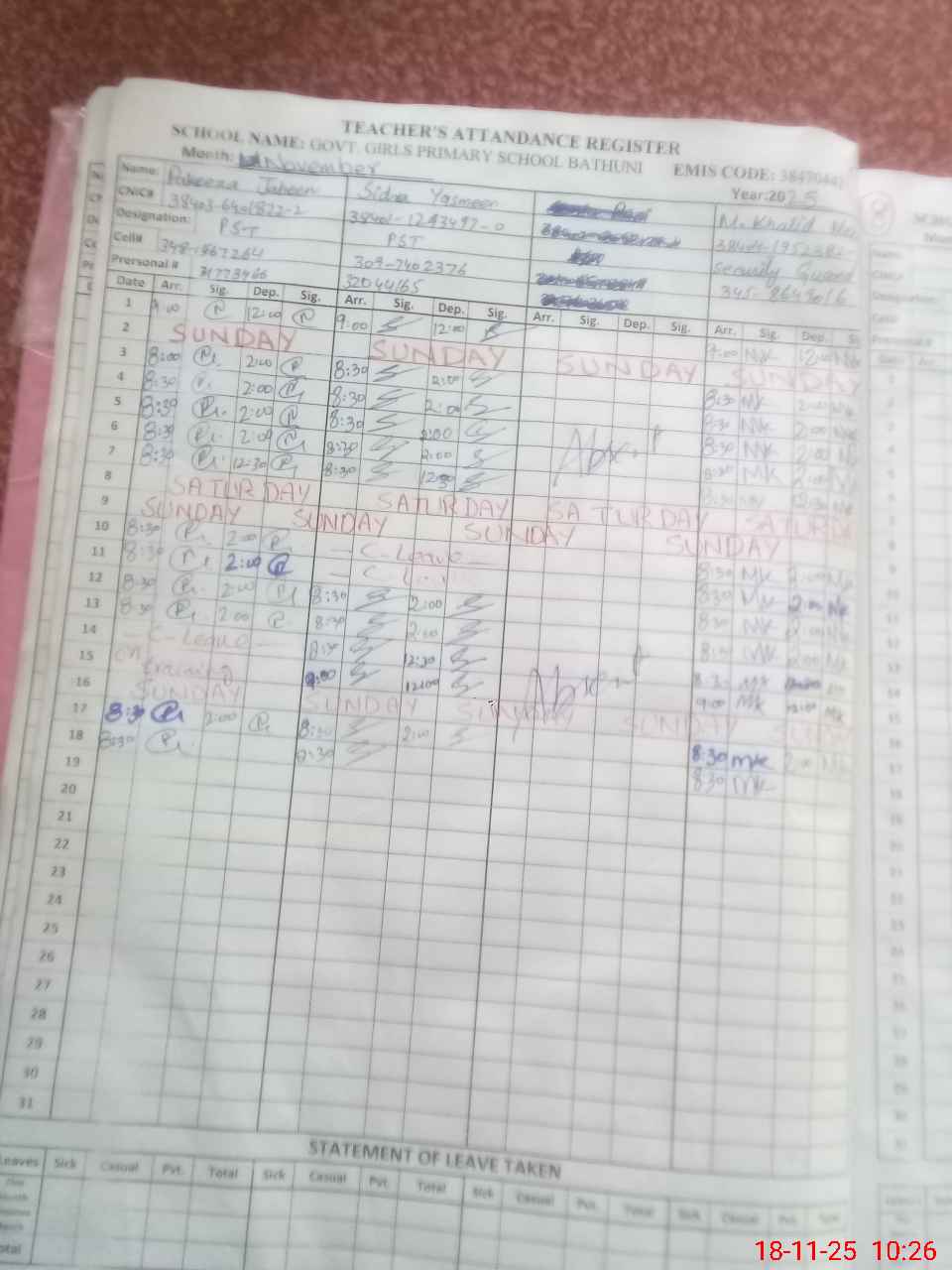 | Name: PA**** JA**** Designation: (School Headmaster's/Headmistress's) PST Phone/Cell Number: 03**** |
