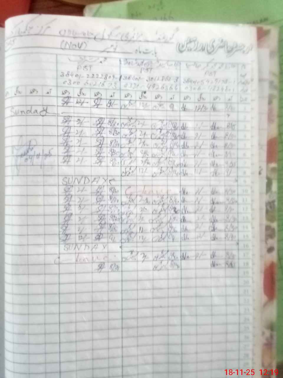 | CNIC | Full Name | Designation | R/C | Absence During Last Calender Month |