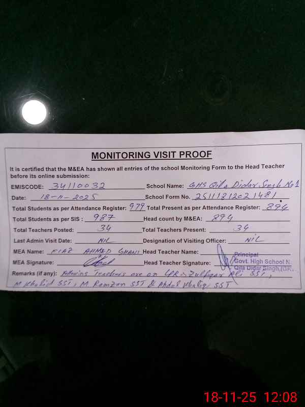 | EMIS Code: 34110032 | Name of School: GHS QILA DIDAR SINGH NO.1 | |||