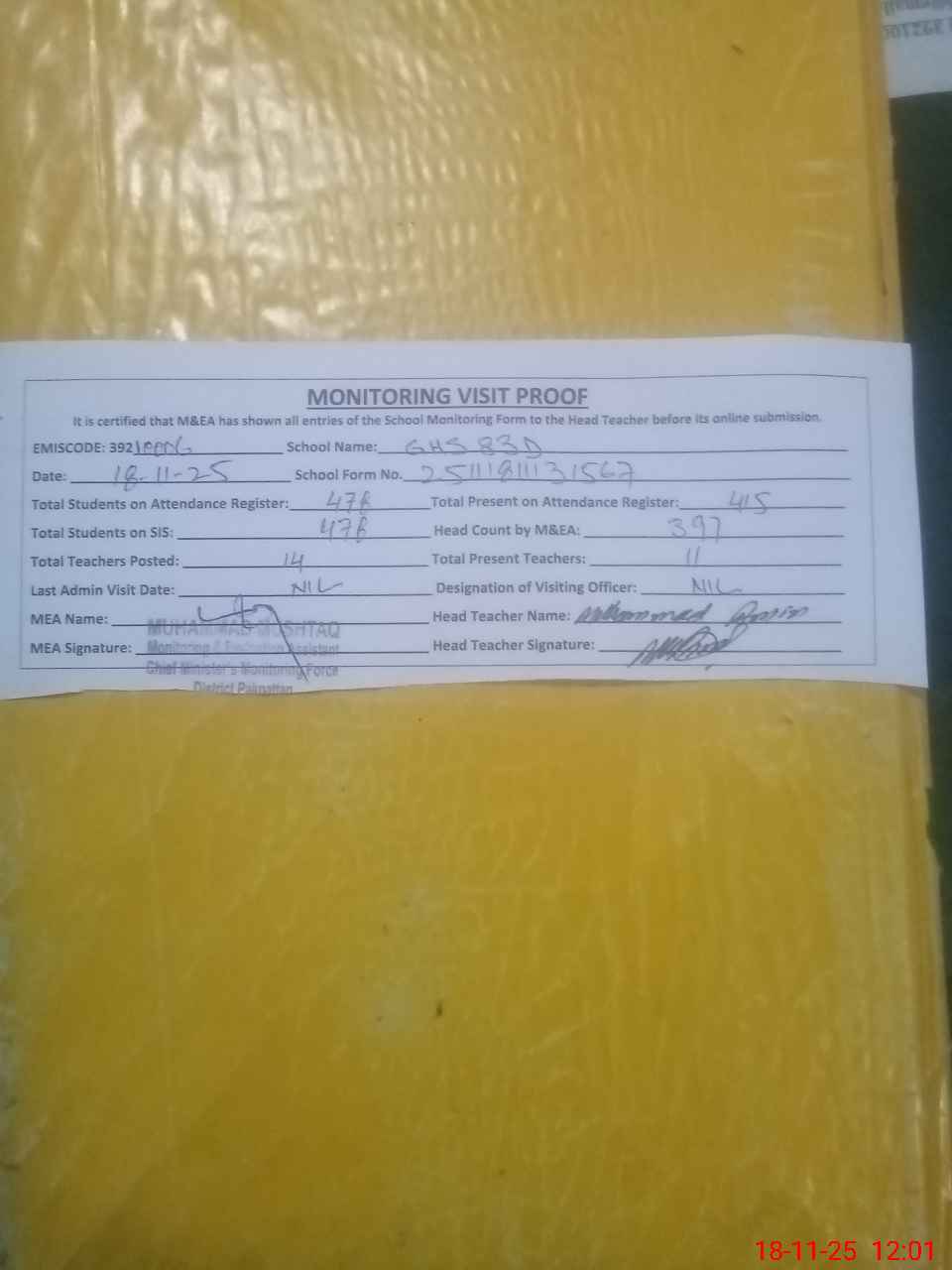 | EMIS Code: 39210006 | Name of School: GHS 83/D P.O 83/D PAKPATTAN | |||