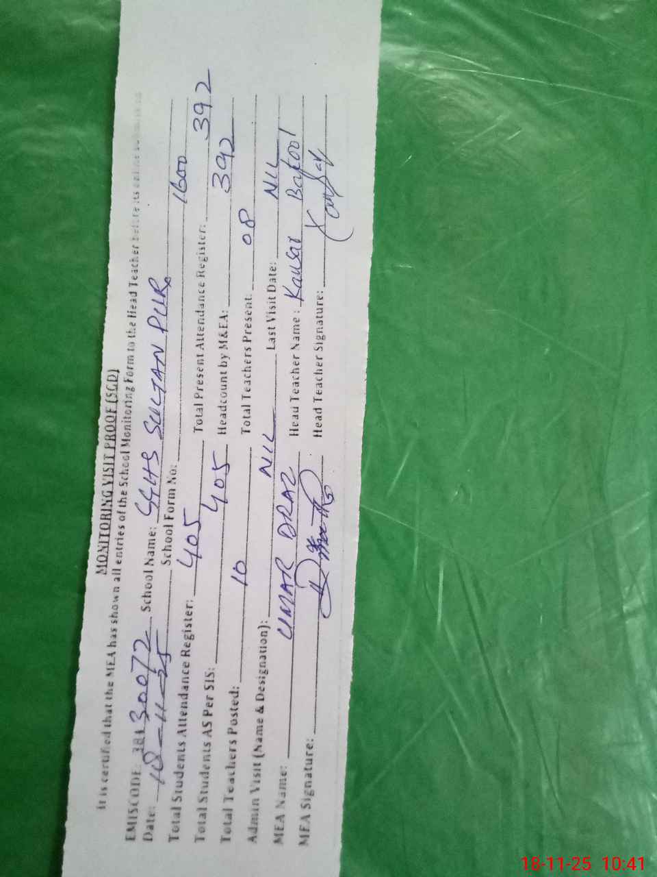 | EMIS Code: 38430072 | Name of School: GGHS SULTAN PUR | |||