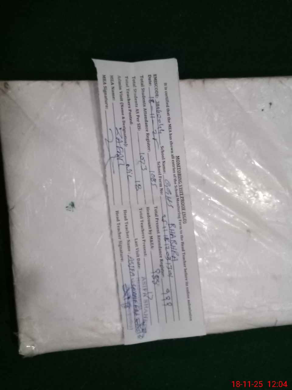 | Attendance Register | Head Teacher | MEA with School | Visit Proof |