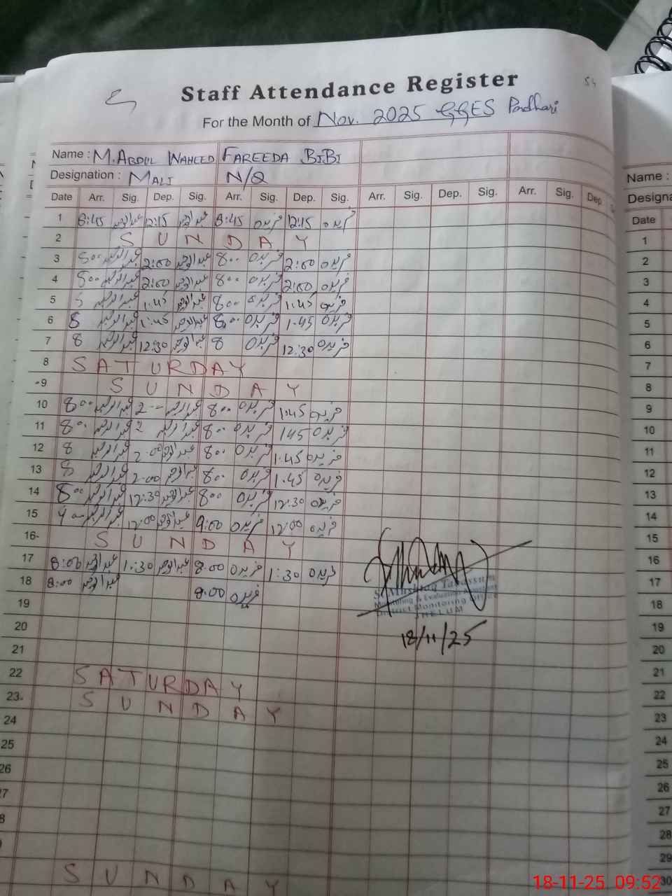 | Monitoring Date: 18-11-2025 | Start Time: 18-11-2025 09:07 AM | End Time: 18-11-2025 10:03 AM | Name of MEA: Sh**** Mu**** Ta**** | |