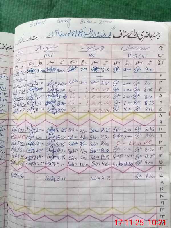 | CNIC | Full Name | Designation | R/C | Absence During Last Calender Month |