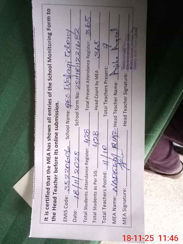 | EMIS Code: 35220606 | Name of School: GGES WAFAQI COLONY (EX-MCL) | |||