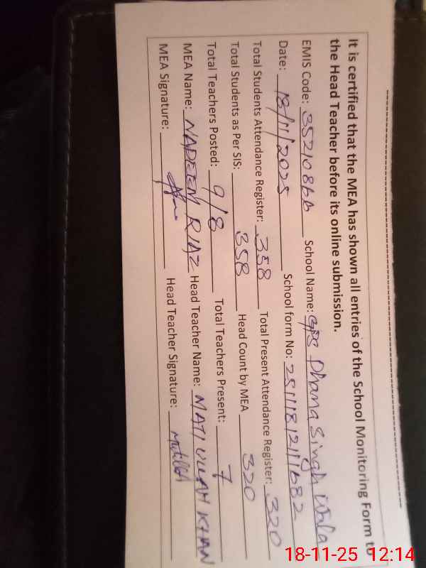 | EMIS Code: 35210866 | Name of School: GPS DHANA SINGH WALA (EX-MCL) | |||