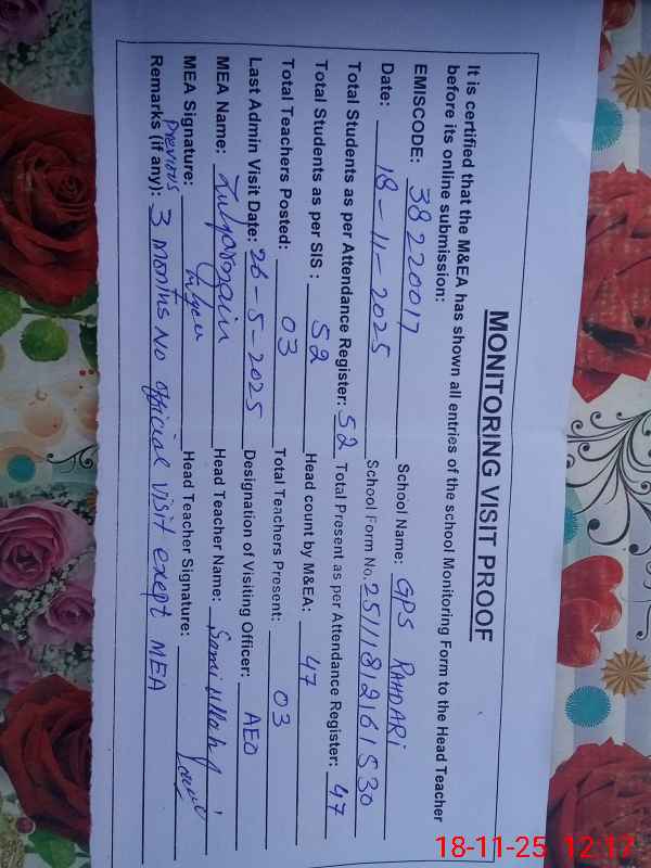 | EMIS Code: 38220017 | Name of School: GPS RAHDARI | |||