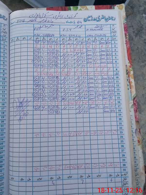 | Name: SH**** AB**** Designation: (School Headmaster's/Headmistress's) PST Phone/Cell Number: 03**** |