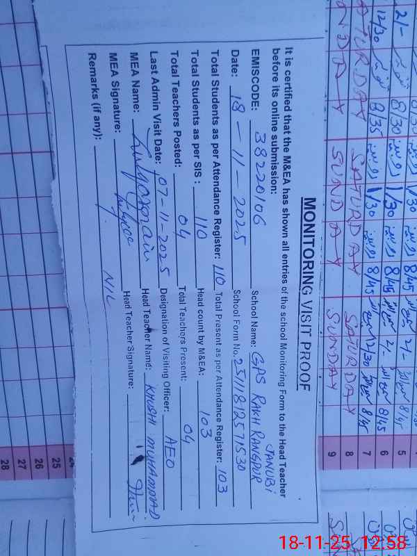 | EMIS Code: 38220106 | Name of School: GPS RAKH RANGPUR JANUBI | |||