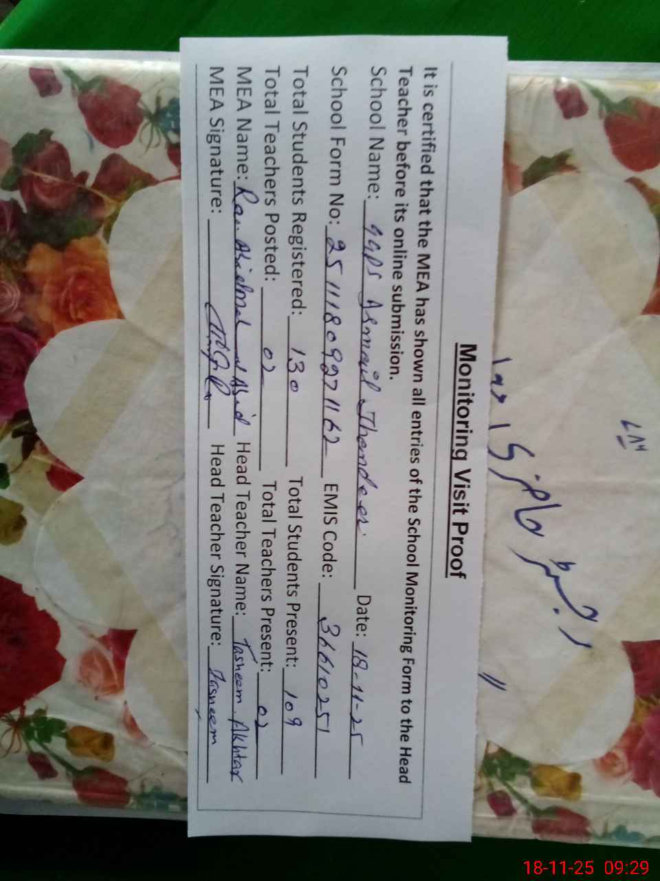 | EMIS Code: 36610251 | Name of School: GGPS ISMAIL JHANDEER | |||