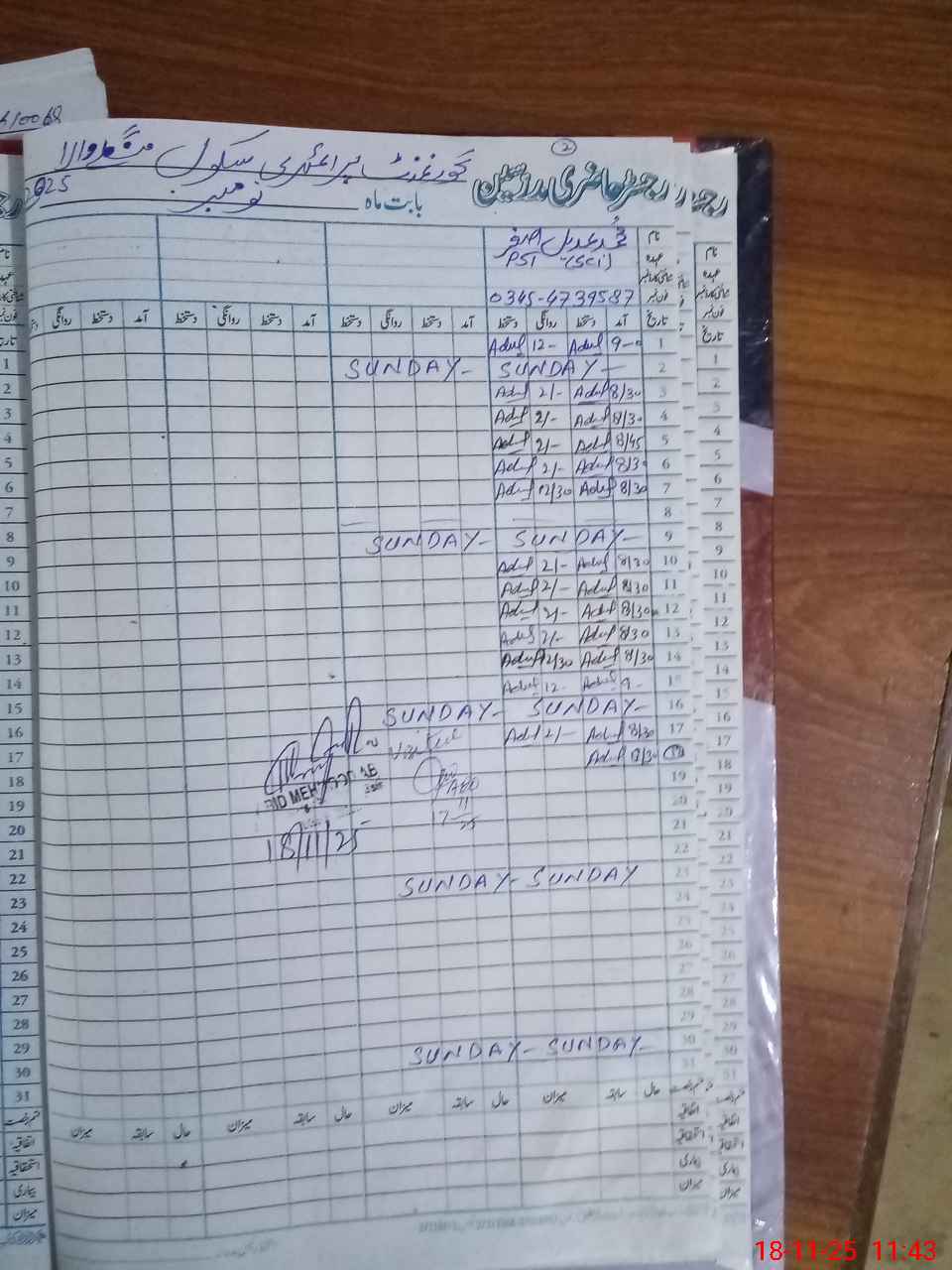 | Name: RI**** HU**** Designation: (School Headmaster's/Headmistress's) PST Phone/Cell Number: 03**** |
