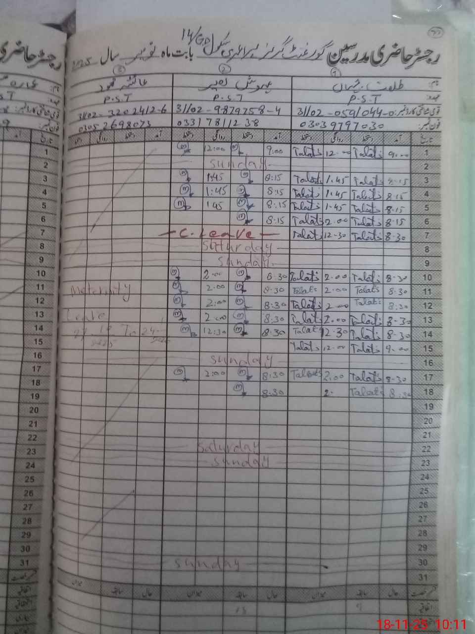 | 31**** | Ay**** Me**** | Regular | 6 | 0 | 0 | 5 | 0 | 0 | 0 | 0 | 1 | Maternity | |
