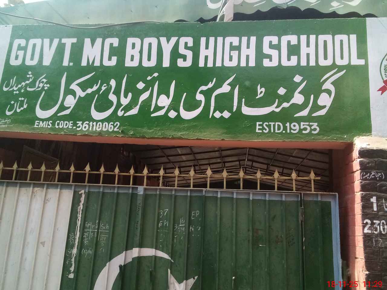 | EMIS Code: 36110062 | Name of School: GHS MC CHOWK SHAHIDAN MULTAN | |||