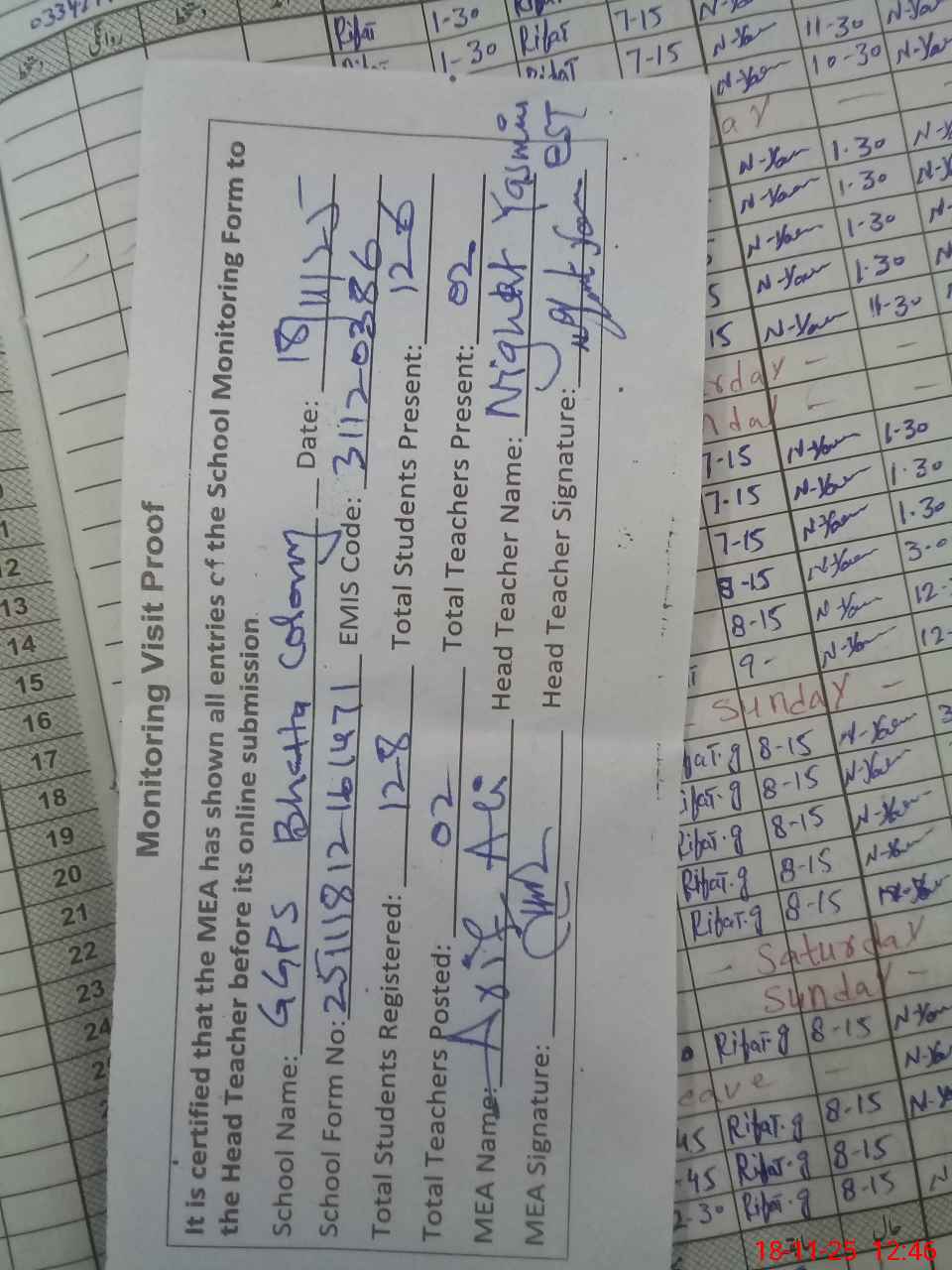 | EMIS Code: 31120386 | Name of School: GGPS BAHTTA COLONY | |||