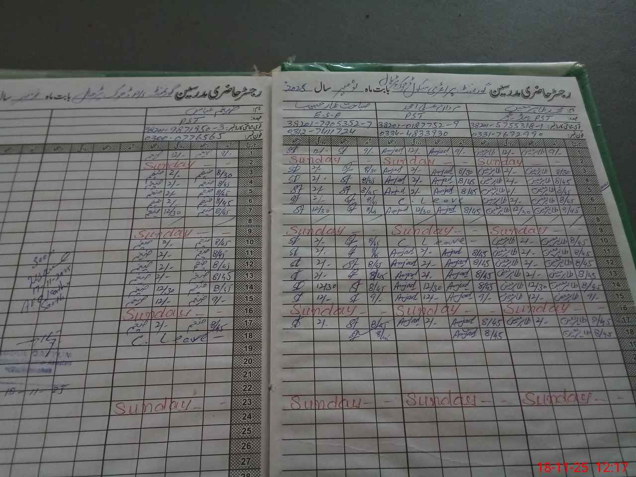 | CNIC | Full Name | Designation | R/C | Absence During Last Calender Month |