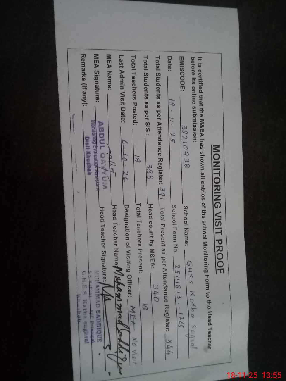 | EMIS Code: 38210938 | Name of School: GHSS KATHA SAGHRAL | |||