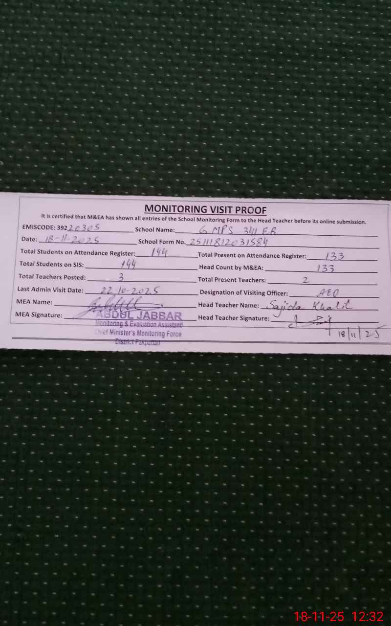 | Certified that this School was Inspected by the Undersigned MEA/DMO Today and the Information Stated Above is as Per Record. | |||||