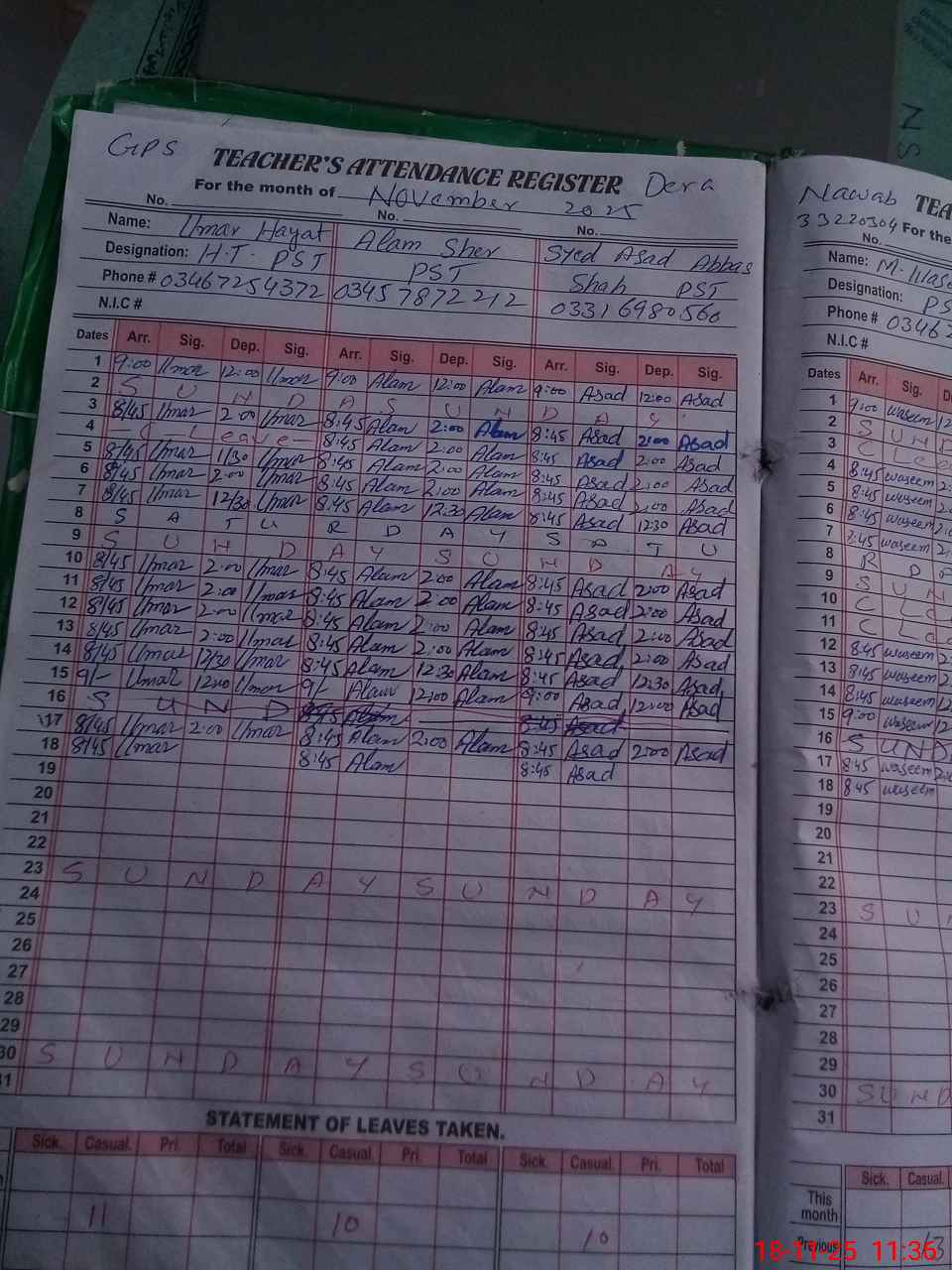 | Name: Um**** Ha**** Designation: (School Headmaster's/Headmistress's) PST Phone/Cell Number: 03**** |
