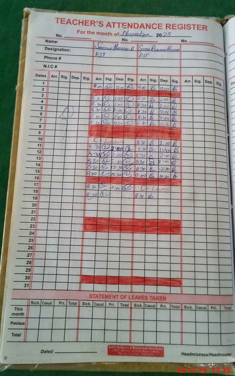 | Name: SA**** MA**** Designation: (School Headmaster's/Headmistress's) PST Phone/Cell Number: 03**** |