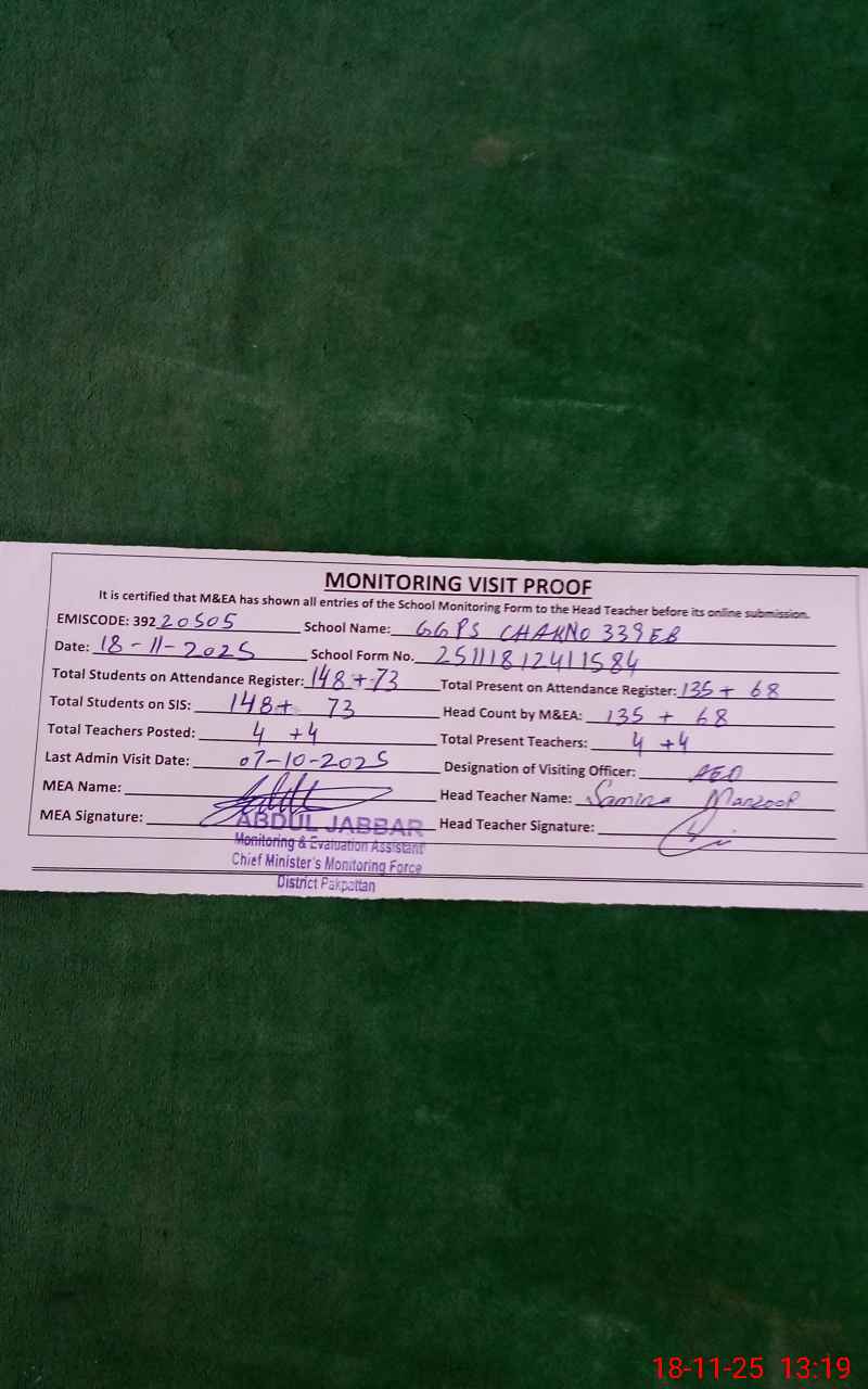 | EMIS Code: 39220505 | Name of School: GGPS CHAK NO.339/EB | |||