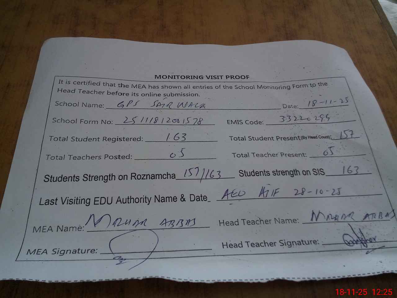 | EMIS Code: 33220294 | Name of School: GPS SAIR WALA | |||