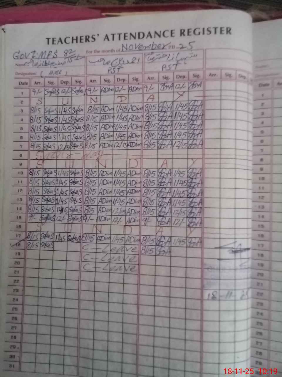 | Name: Sa**** Su**** Designation: (School Headmaster's/Headmistress's) PST Phone/Cell Number: 03**** |