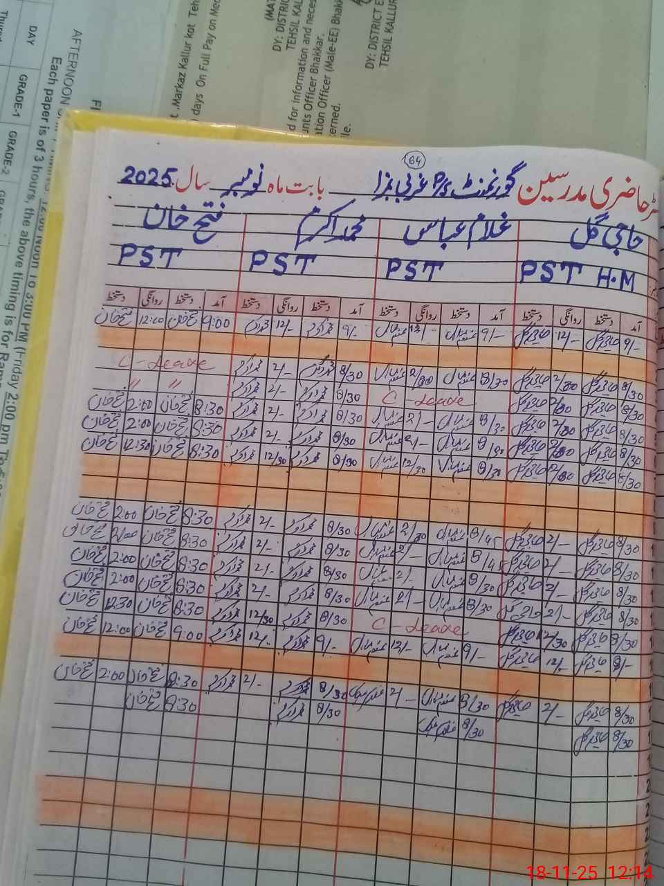 | District: BHAKKAR | Tehsil: KALLUR KOT | Markaz: KALLUR KOT - MALE | Level: Primary | |
