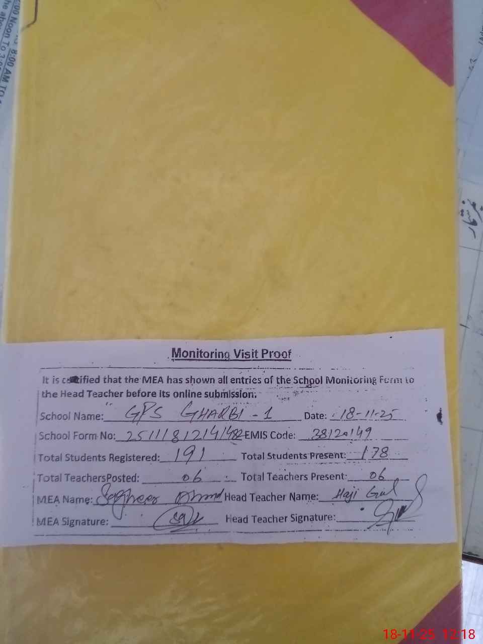 | EMIS Code: 38120149 | Name of School: GPS GHARBI NO. 1 | |||