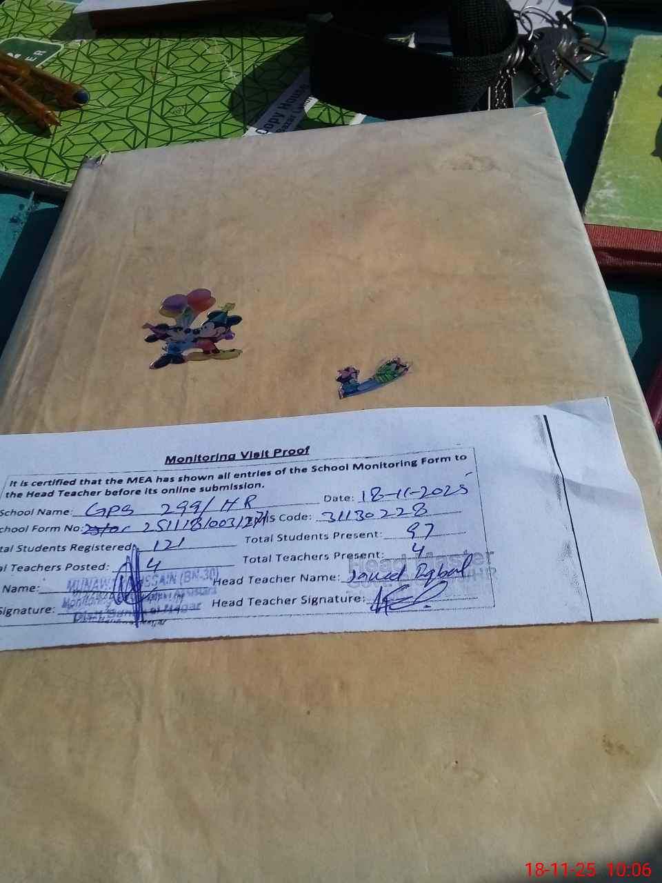 | EMIS Code: 31130228 | Name of School: GPS CHAK NO 299 HR | |||
