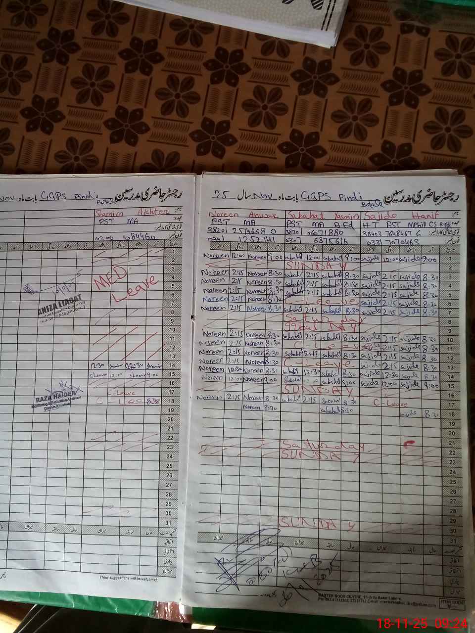 | Name: Sa**** Ha**** Designation: (School Headmaster's/Headmistress's) E S E (Sci-Math) Phone/Cell Number: 03**** |