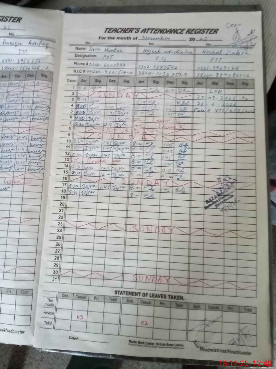 | Name: Nu**** Za**** Designation: (School Headmaster's/Headmistress's) PST Phone/Cell Number: 03**** |
