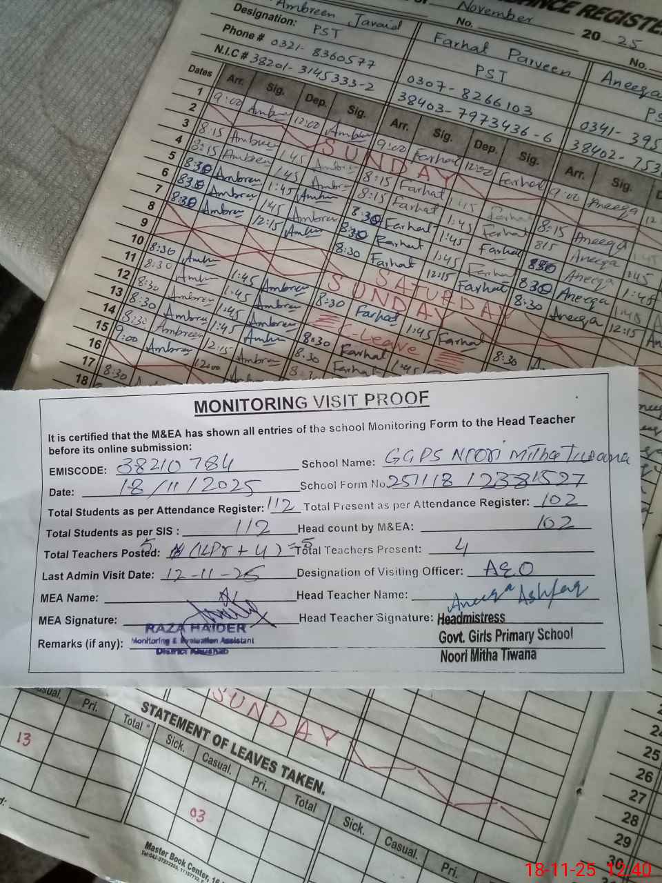 | EMIS Code: 38210784 | Name of School: GGPS NOORI MITHA TIWANA | |||
