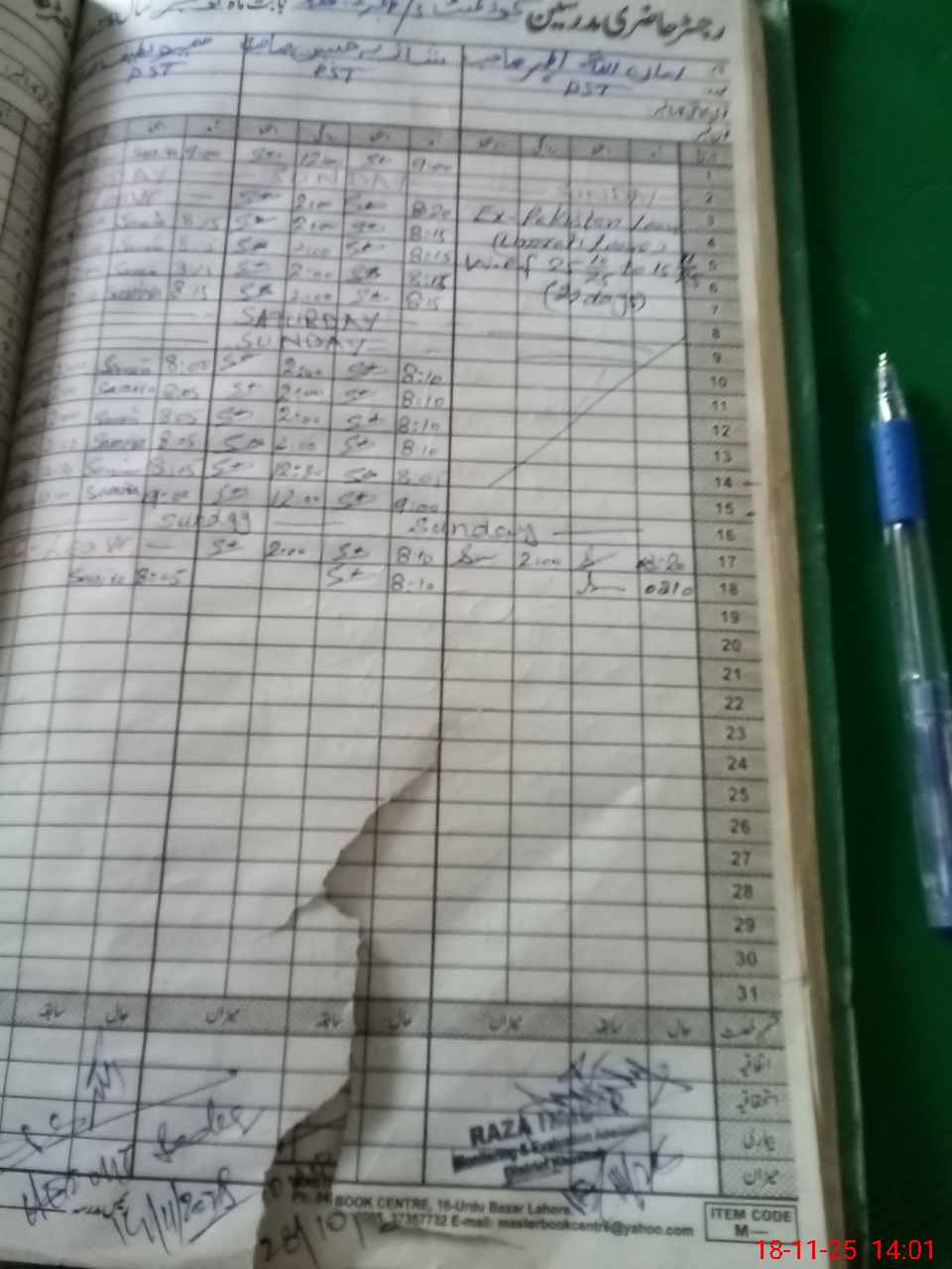 | CNIC | Full Name | Designation | R/C | Absence During Last Calender Month |