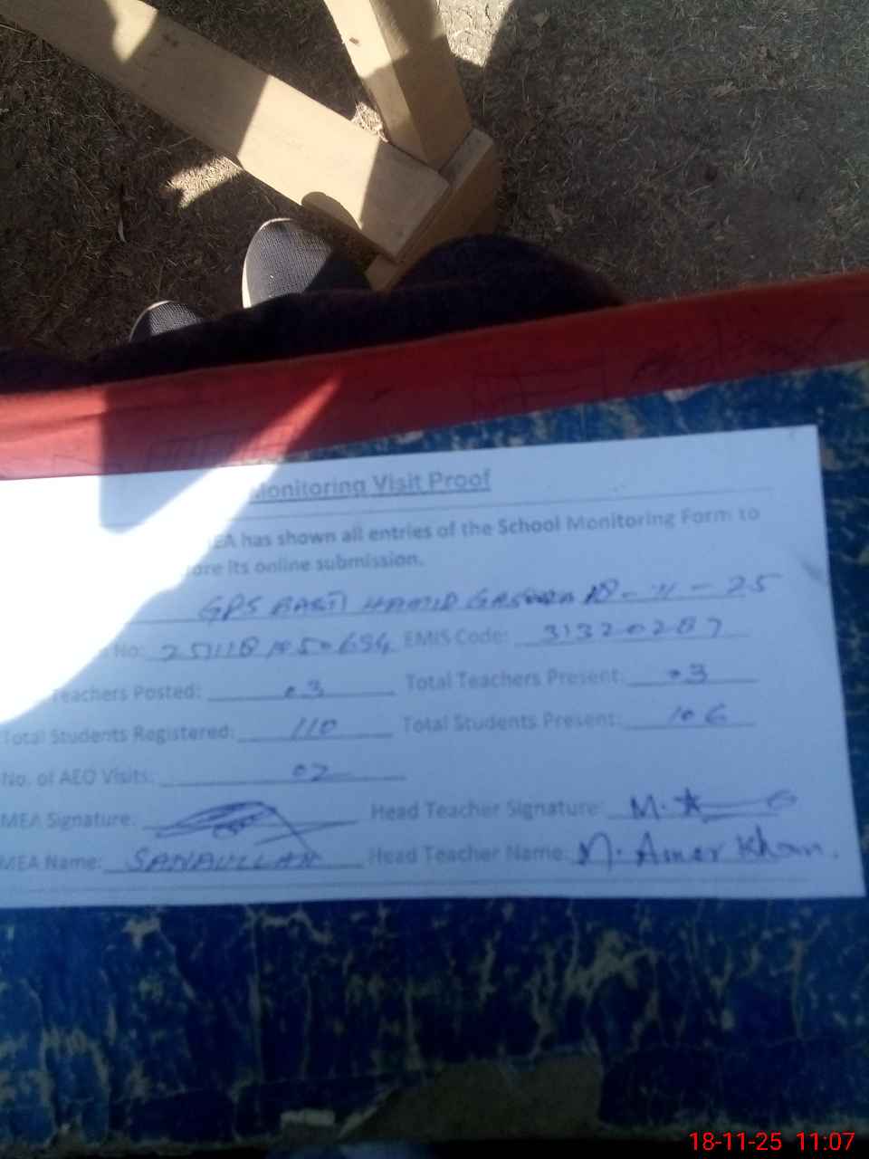 | Attendance Register | Head Teacher | MEA with School | Visit Proof |