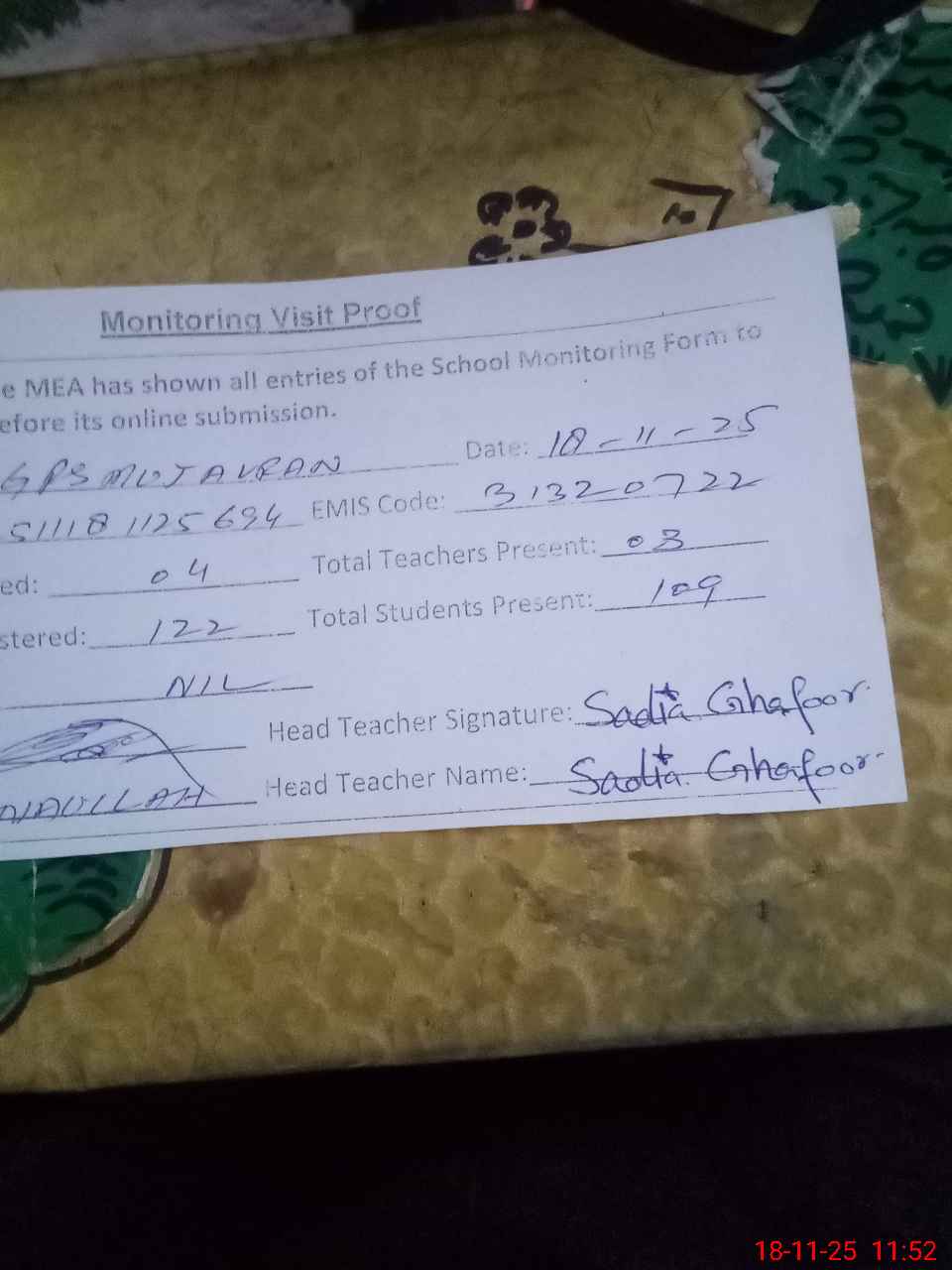 | EMIS Code: 31320722 | Name of School: GGPS MUJAVRAN | |||