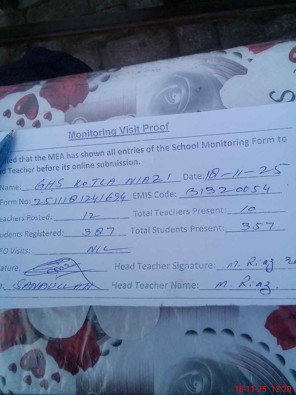 | EMIS Code: 31320054 | Name of School: GHS KOTLA NIAZI | |||
