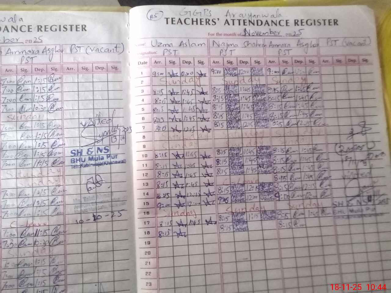 | School Visited by School Health & Nutrition Supervisor (No. of Visits) | Name1: | Shubnum Yasmeen | Name2: | ||