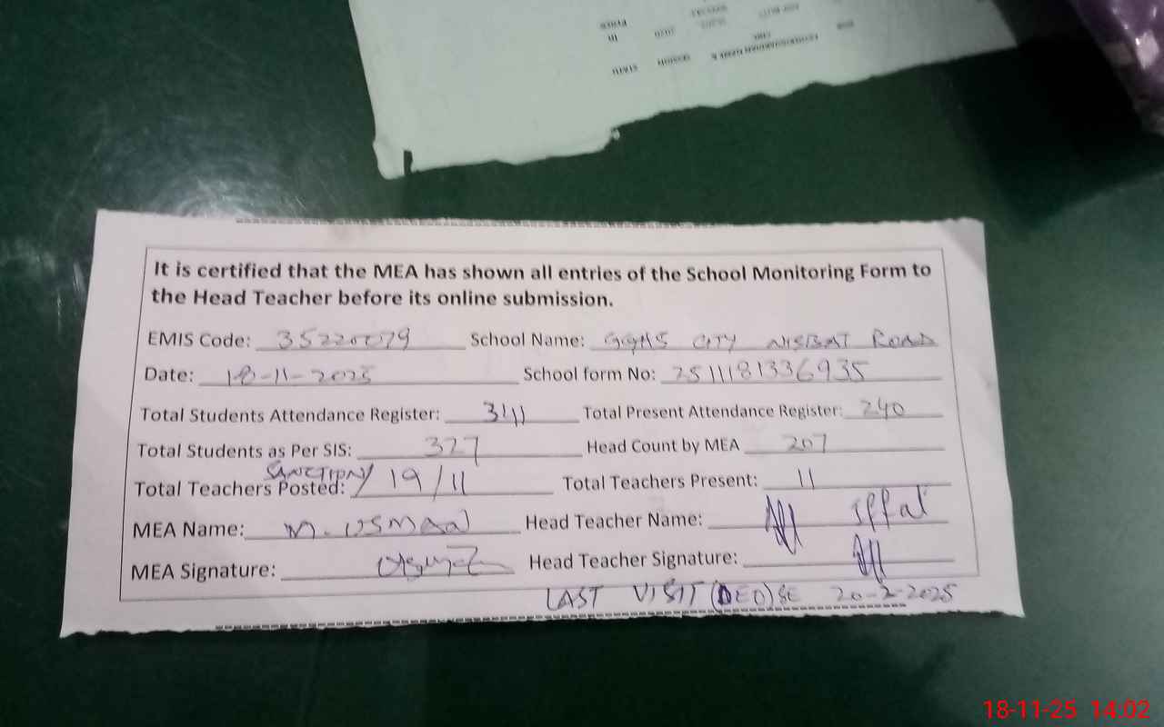 | EMIS Code: 35220079 | Name of School: GGHS CITY NISBAT ROAD | |||