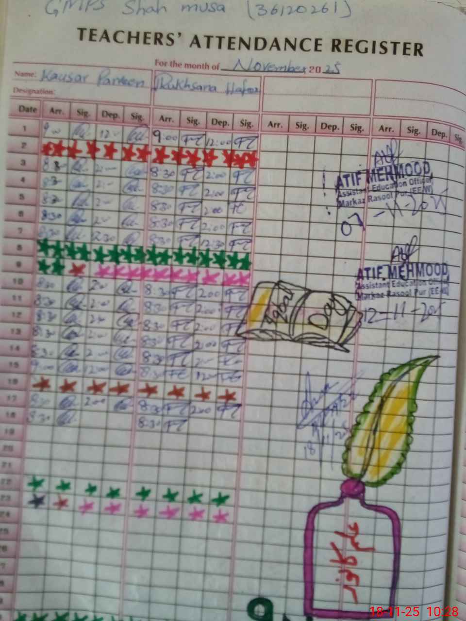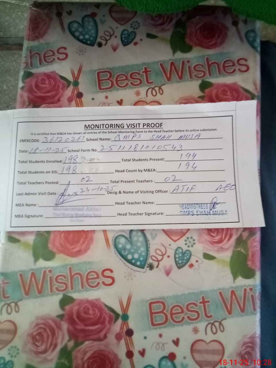 | Attendance Register | Head Teacher | MEA with School | Visit Proof |