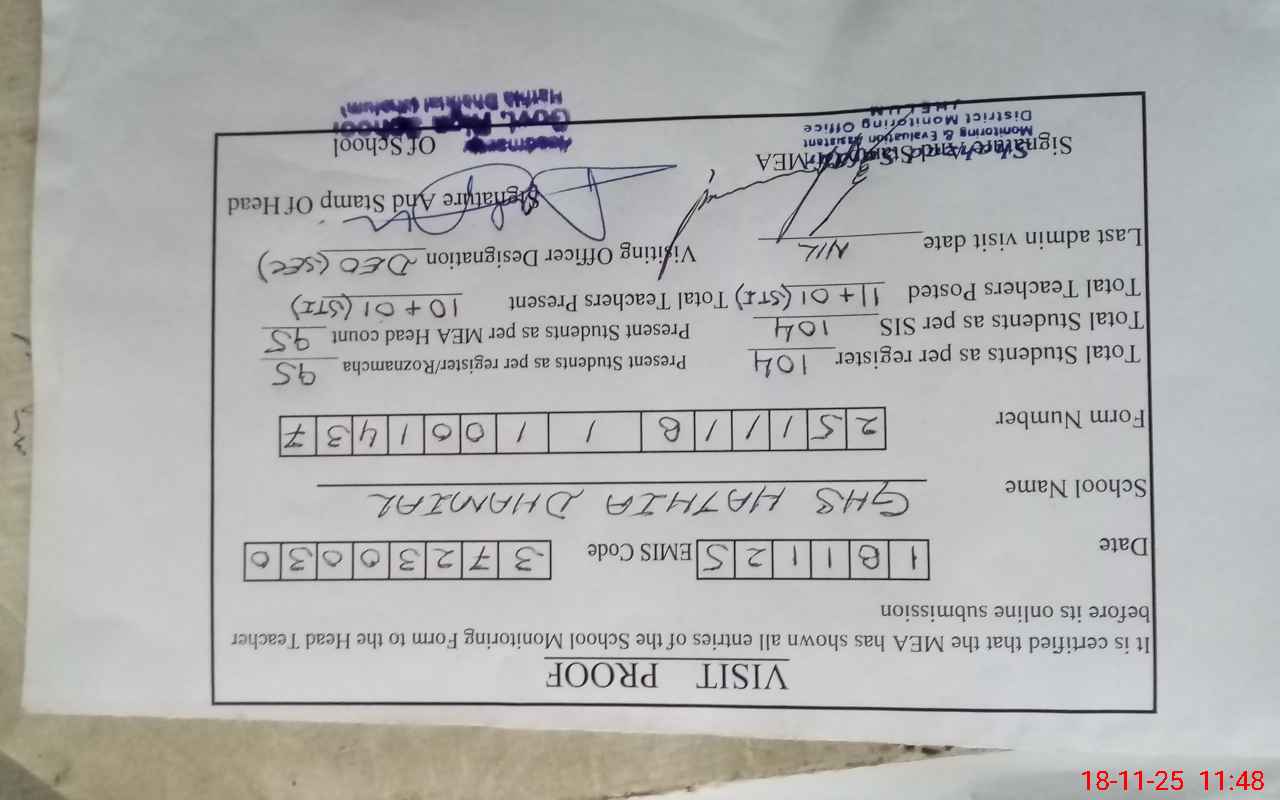 | EMIS Code: 37230030 | Name of School: GHS HATHIA DHAMIAL | |||