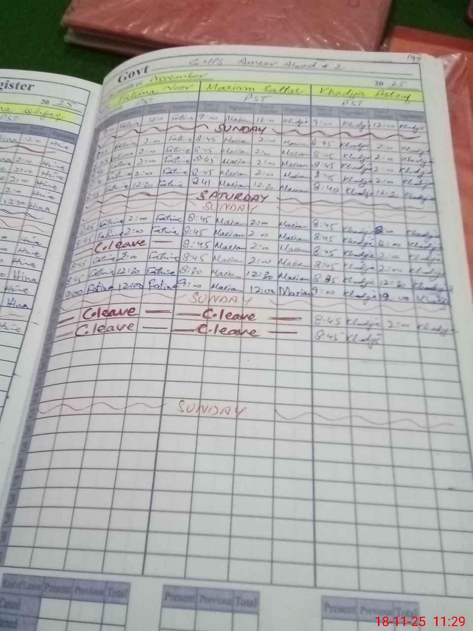| Leave | Duty | Absent | Maternity | Medical | Ex- Pak |