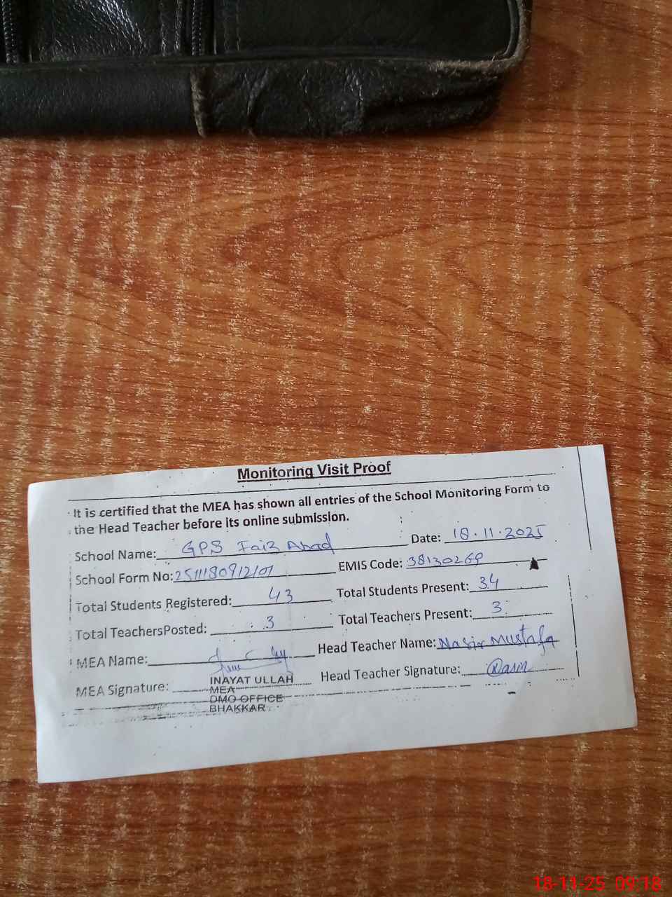 | EMIS Code: 38130269 | Name of School: GPS FAIZ ABAD | |||