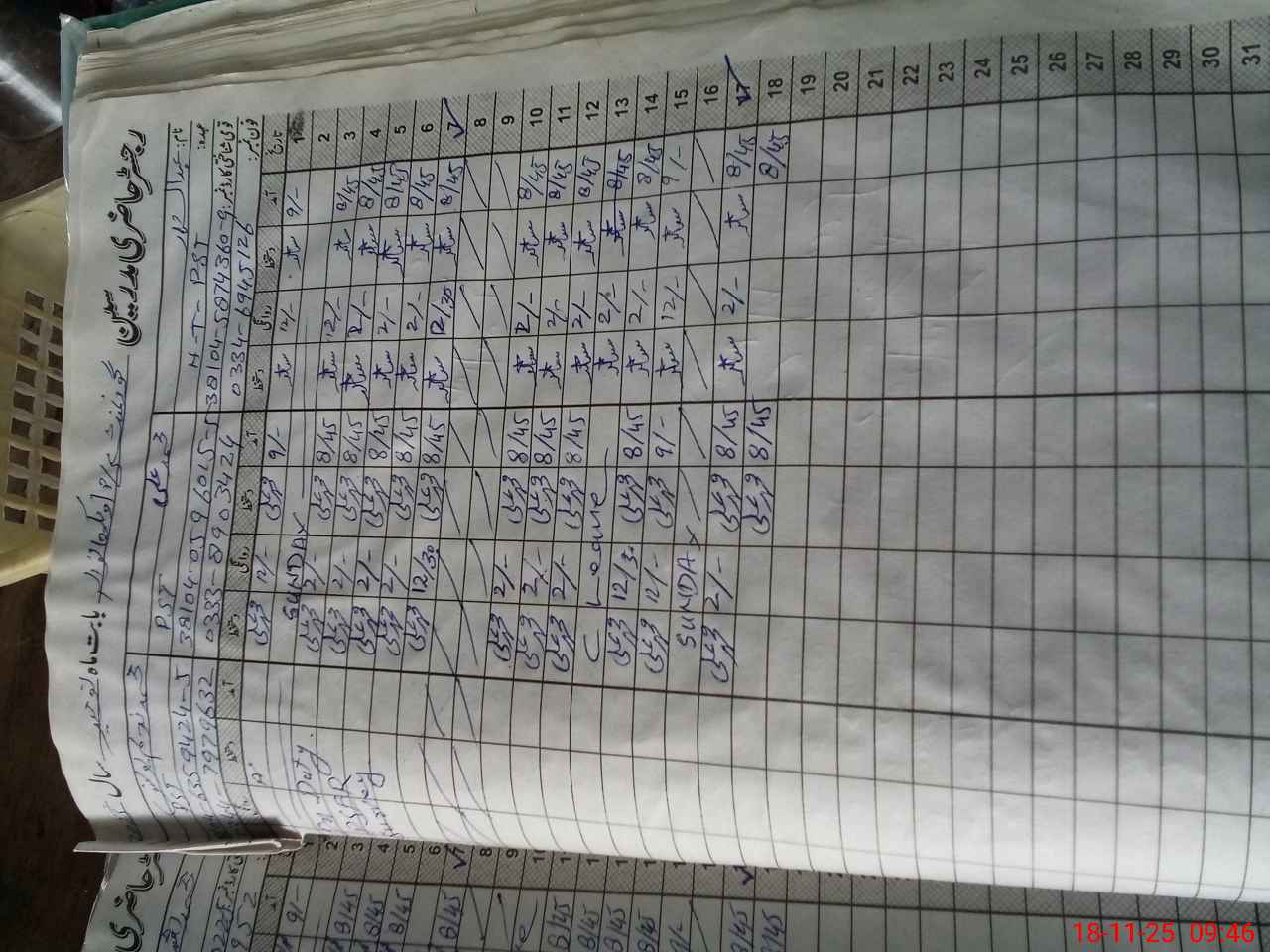 | CNIC | Full Name | Designation | R/C | Absence During Last Calender Month |