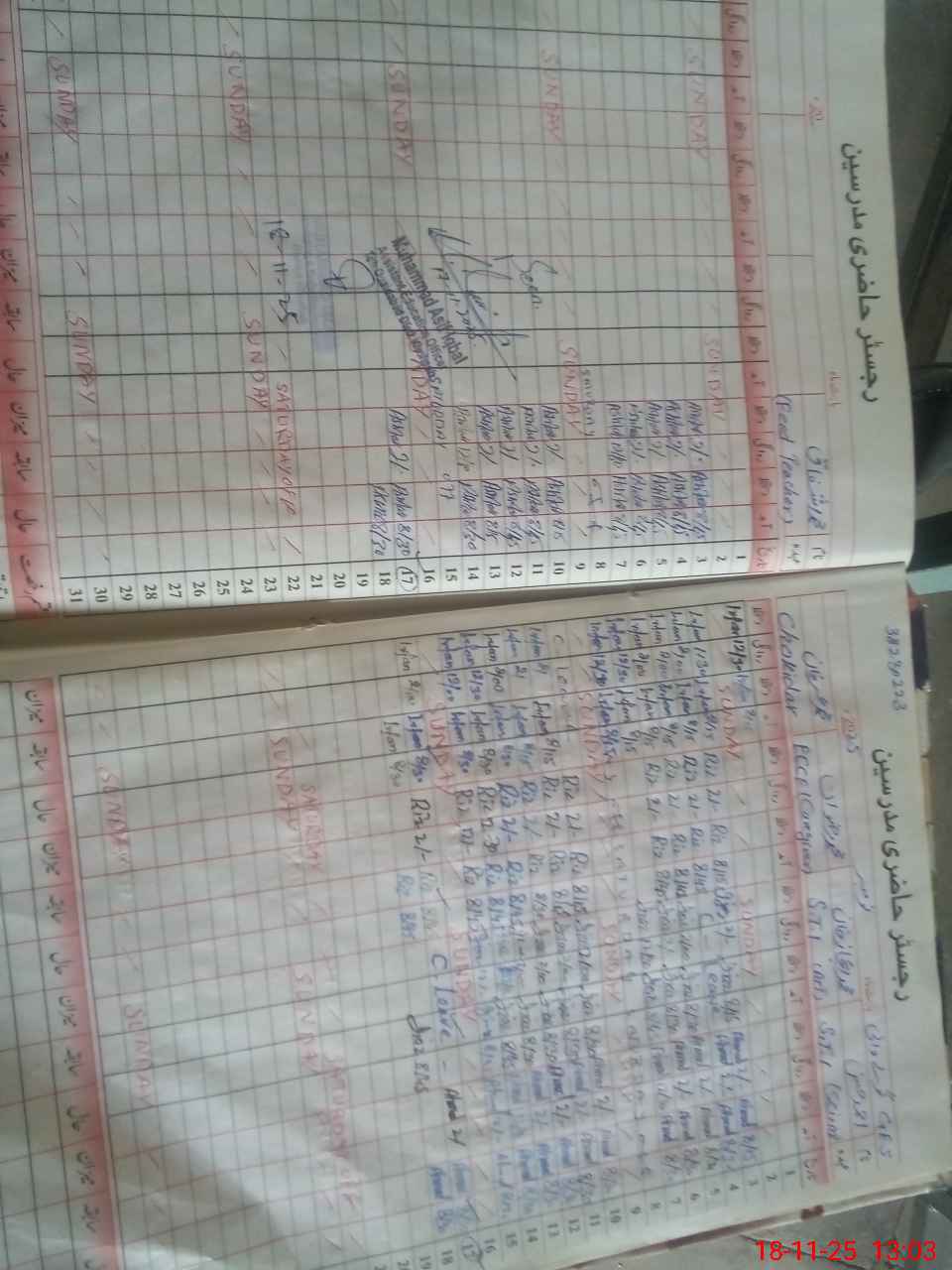 | CNIC | Full Name | Designation | R/C | Absence During Last Calender Month |