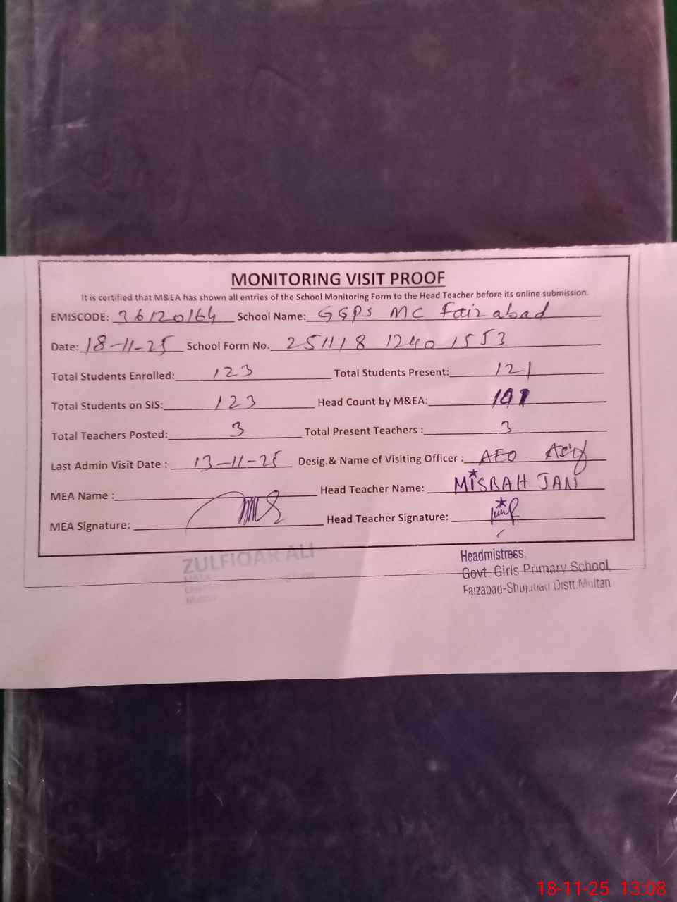| EMIS Code: 36120164 | Name of School: GGPS FAIZ ABAD SHUJABAD | |||