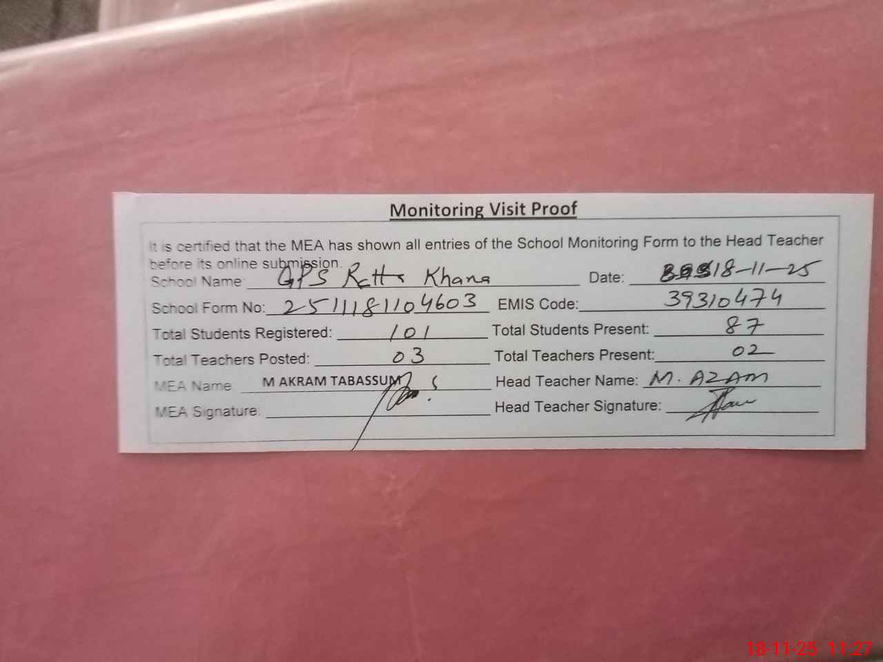| EMIS Code: 39310474 | Name of School: GPS RATTA KHANA | |||