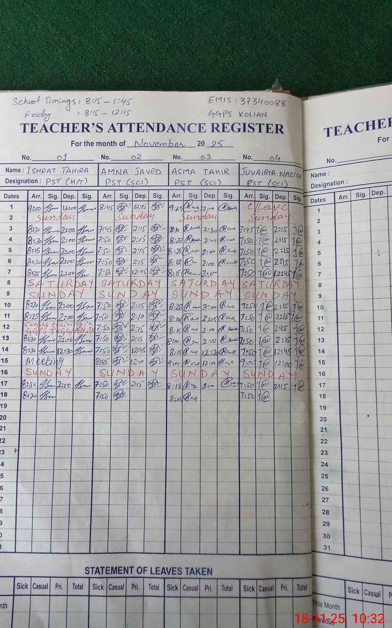 | Attendance Register | Head Teacher | MEA with School | Visit Proof |
